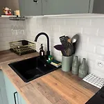 - ❓Is there a kitchen available at this apartment for guest use?Yes, this apartment is furnished with an equipped kitchen and offers an electric kettle, a refrigerator, and kitchenware as well.